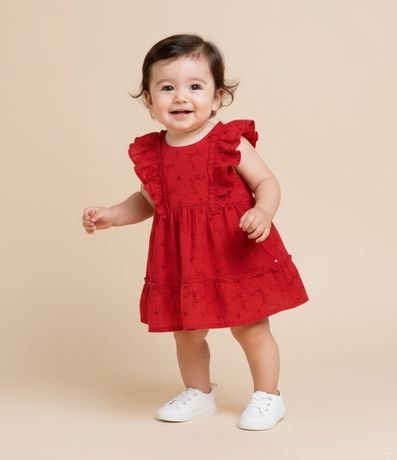 Vestido Infantil em Tricoline com Babados e Calcinha - Tam 3 a 18 Meses