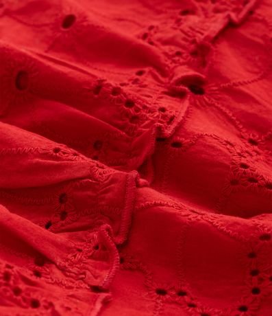 Vestido infantil confeccionado em tricoline mais sustentável. Possui gola redonda, sem mangas, com babadinhos, recorte na cintura e texturizado. Acompanha calcinha.