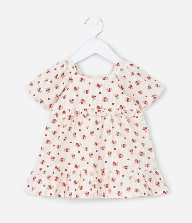 Vestido Infantil em Tricoline com Estampa Floral e Calcinha - Tam 3 a 18 Meses