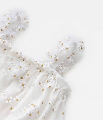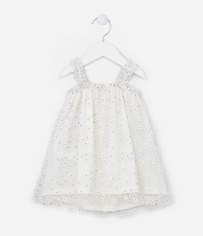Vestido Infantil em Tule com Estampa de Florzinhas com Glitter - Tam 0 a 18 meses