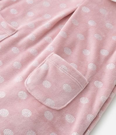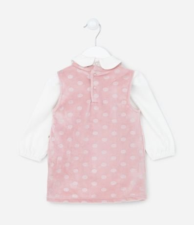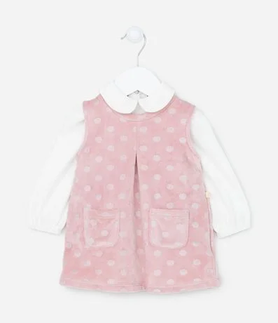 Ref: Vestido infantil em veludo com bolsinhos e estampa bolinhas, e body mangas longas com gola boneca, uma doçura para sua pequena!