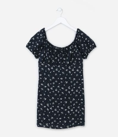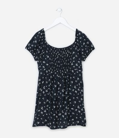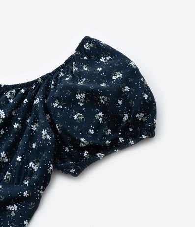 Ref: Vestido infantil manga curta em viscose com decote em U, ajuste nas mangas e estampa super delicada de flores.