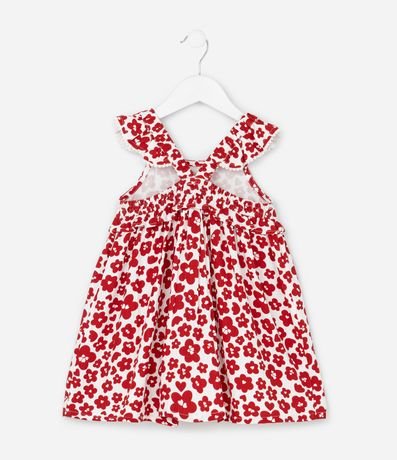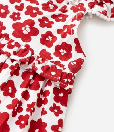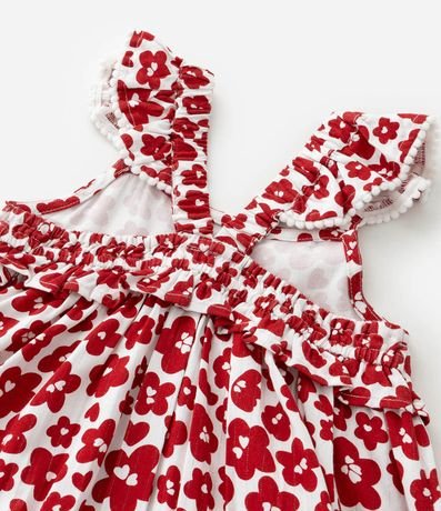 Ref: Vestido infantil confeccionado em viscose mais sustentável, com decote quadrado, alças com babadinhos e mini pompons, cintura com babadinho e estampa floral.