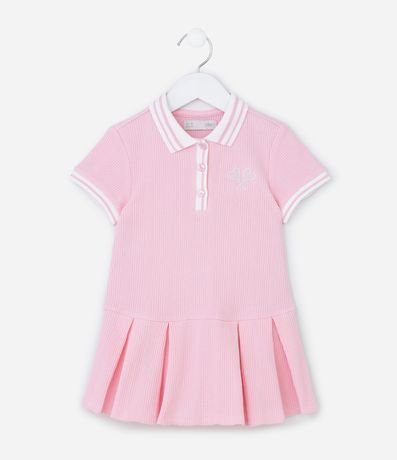 Ref: Vestidinho infantil confeccionado em algodão. De modelinho tenista, com gola polo e pregas na sainha, a peça possui textura, e é super fofa!