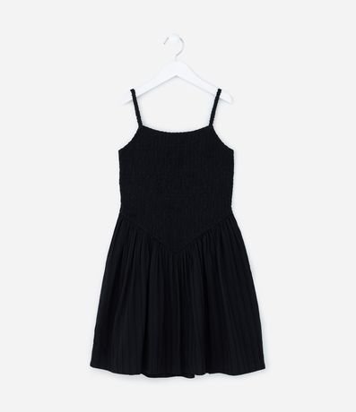 Ref: Vestidinho infantil confeccionado com algodão certificado bci, com alças finas e textura, a peça é básica e ideal para o dia a dia das meninas.