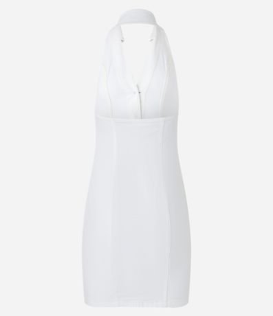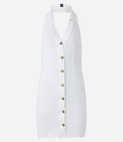 Ref: Vestido frente única feminino jeans, com abotoamento frontal, gola lapela e recortes.