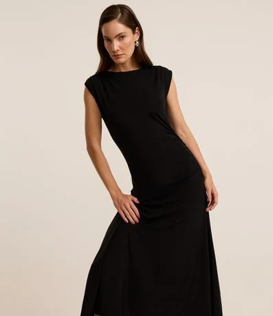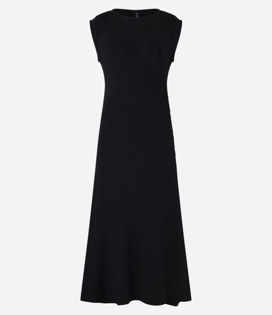 Vestido Long Midi Canelado com Drapeados Laterais
