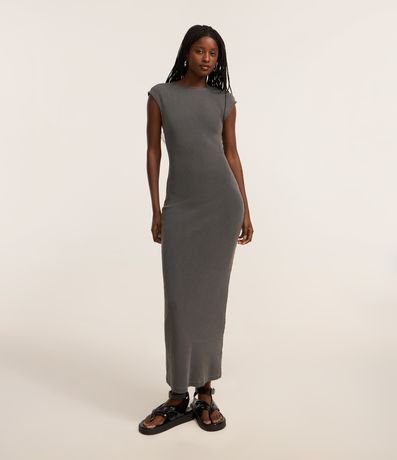 Ref: Vestido long midi, confeccionado em ribana, com gola redonda, mangas curtinhas sem cavas, textura canelada e efeito levemente estonado. Este produto possui algodão certificado BCI em sua composição, sendo ambientalmente mais responsável.