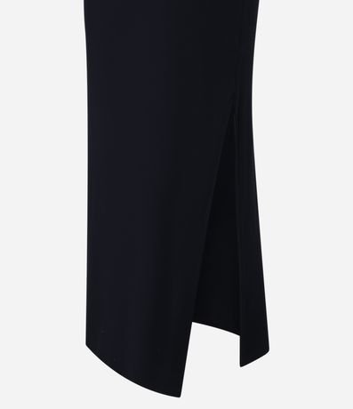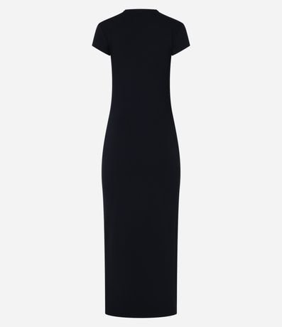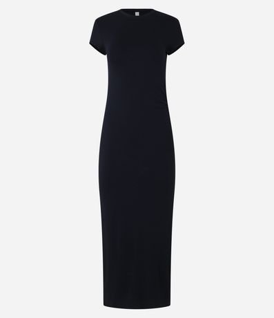 Vestido feminino de modelo long midi, com gola redonda, mangas curtas e fenda e franzido lateral. Peça confeccionada em moletinho.