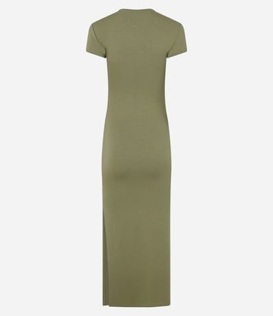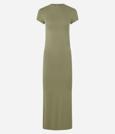 Ref: Vestido feminino de modelo long midi, com gola redonda, mangas curtas e fenda e franzido lateral. Peça confeccionada em moletinho.