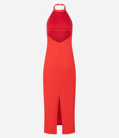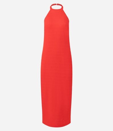 Ref: Vestido feminino confeccionado em poliéster com elastano para conforto e caimento perfeito. Modelo long midi com frente única, decote redondo, alça no pescoço, decote profundo nas costas e fenda traseira. Ideal para looks sofisticados e elegantes.