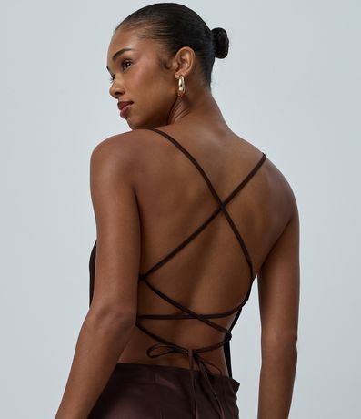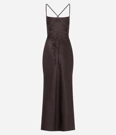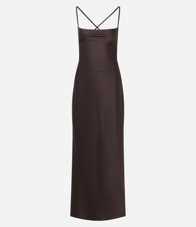 Ref: Vestido midi em cetim com decote degagê e alças finas cruzadas nas costas, trazendo um visual sofisticado e elegante. Possui caimento reto, brilho sutil e toque macio, ideal para festas e ocasiões especiais. Peça leve que valoriza a silhueta.