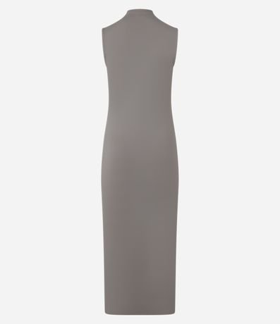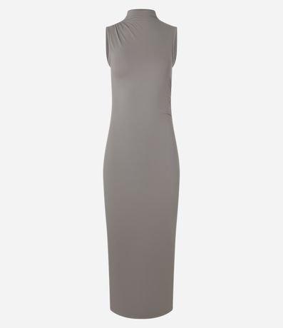 Ref: Vestido long midi com golinha alta, confeccionado em microfibra leve, sem manga e com franzidinhos no ombro.