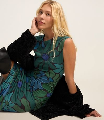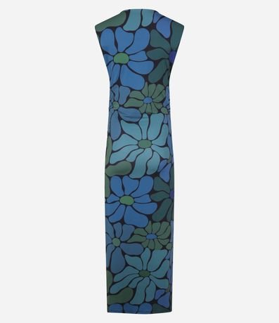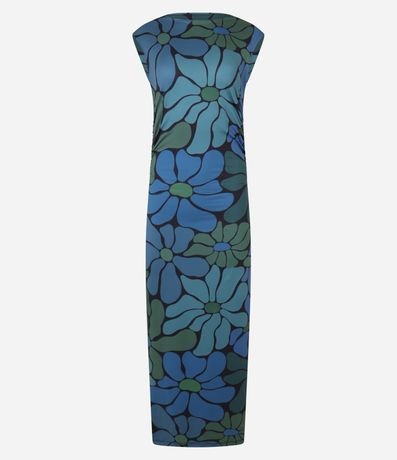 Ref: Vestido long midi com ombro caído, sem manga confeccionado em microfibra leve, estampa floral e franzidinho lateral.