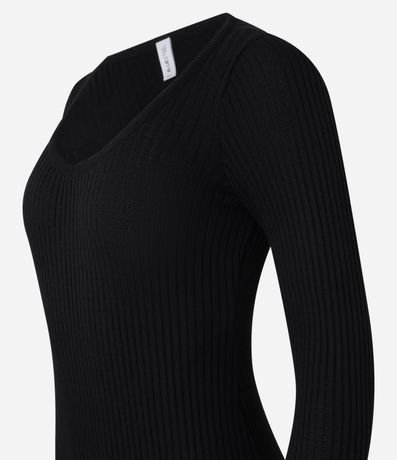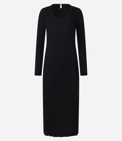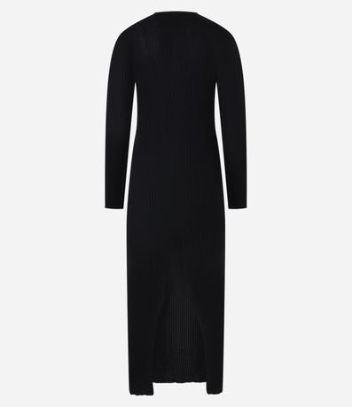 Vestido manga longa, confeccionado em tricô produzido atraves de boas práticas ambientais, sem estampa e com fenda na parte de trás.