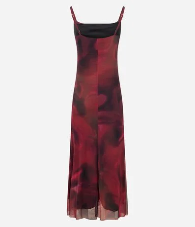 Ref: Vestido long midi, sem mangas, confeccionado em tule, com decote reto, alças finas reguláveis e estampa floral com efeito blur - efeito borrado. Este produto foi fabricado através de processos mais sustentáveis, sendo ambientalmente mais responsável.