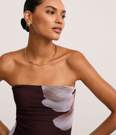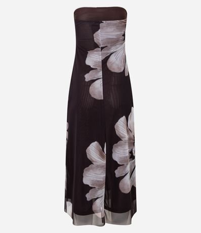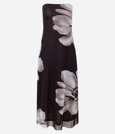 Vestido long midi, sem alças, confeccionado em tule, com estampa floral. Este produto foi fabricado através de processos mais sustentáveis, sendo ambientalmente mais responsável.