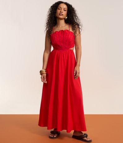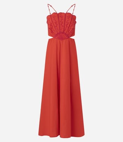 Ref: Vestido de modelo long midi frente única, com amarração nas costas. De alças finas e com bordado delicado no busto, a peça é super elegante!