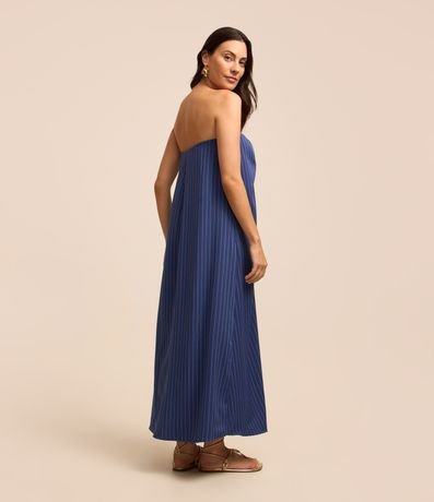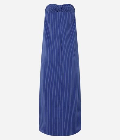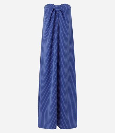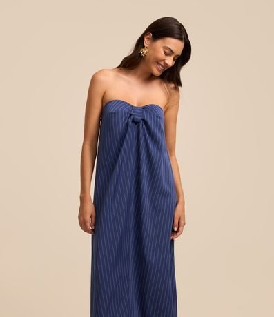 Ref: Vestido alongado sem alças confeccionado em tecido plano com decote coração com nó. Dispõe de listras verticais em estilo riscas de giz e corte de estrutura alfaiatada.