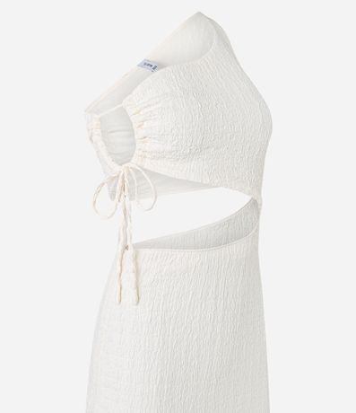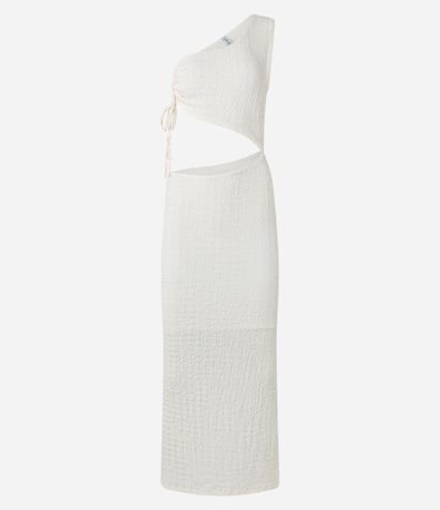 Ref: Vestido longo com decote um ombro só, texturizado, amarração na lateral e recortes vazados.