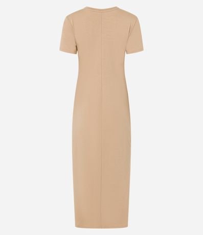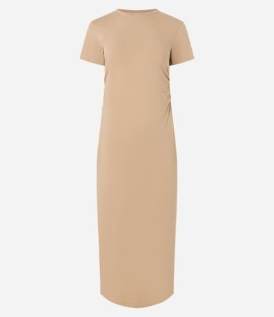 Vestido longo com manga curta, confeccionado em algodão bci com elastano, golinha alta e franzido na lateral.