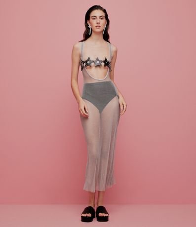 Ref: Vestido longo confeccionado em malha com fio metalizado, sem mangas e decote arredondado. Modelagem reta com caimento elegante e toque leve, ideal para looks festivos e sofisticados. Tecido sintético com elasticidade para conforto e mobilidade, perfeito para compor produções de carnaval.