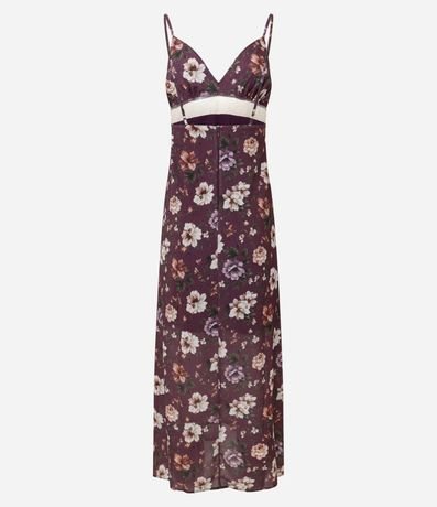 Ref: Vestido feminino longo em chiffon com estampa floral e visual leve. Possui alças finas, decote em V e detalhe em renda no busto, que valoriza o design delicado. Ideal para ocasiões especiais, combinando fluidez, elegância e caimento sofisticado.