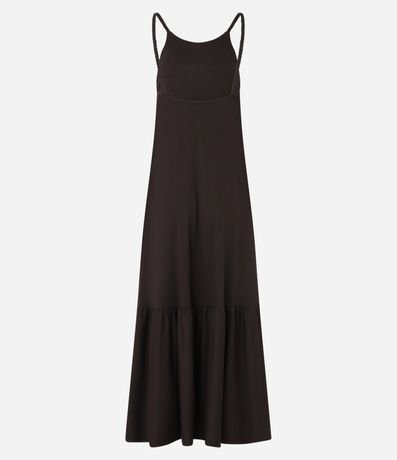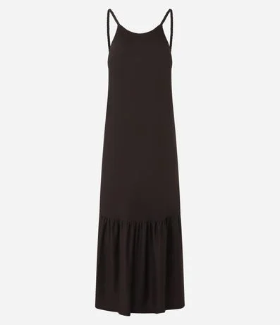 Vestido longo com alcinha fina trançada, confeccionado em algodão com tecido pet reciclado, produzido em boas práticas ambientais e sem estampa.