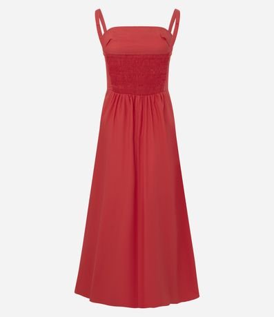 Vestido feminino confeccionado em algodão certificado BCI, através de boas práticas ambientais. O modelo é longo e possui decote reto, com alças finas que garantem sustentação leve. A parte de trás conta com aplicação de lastex, oferecendo melhor ajuste ao corpo e conforto no uso diário.