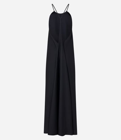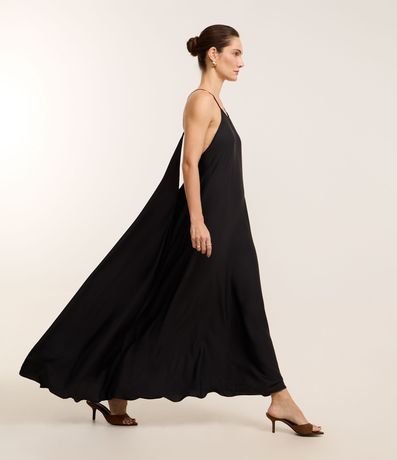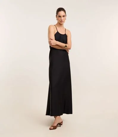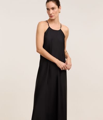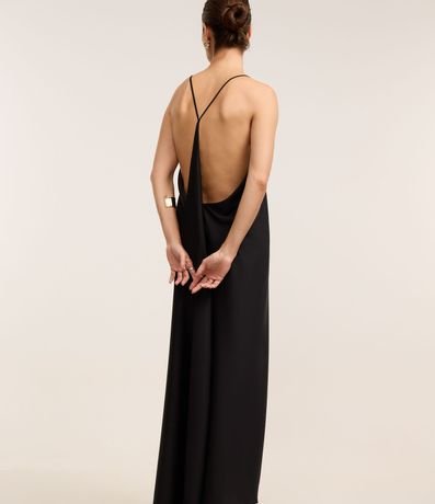 Ref: Vestido longo com alcinhas finas, confeccionado em cetim, frente única com costas abertas e produzido em boas práticas ambientais.