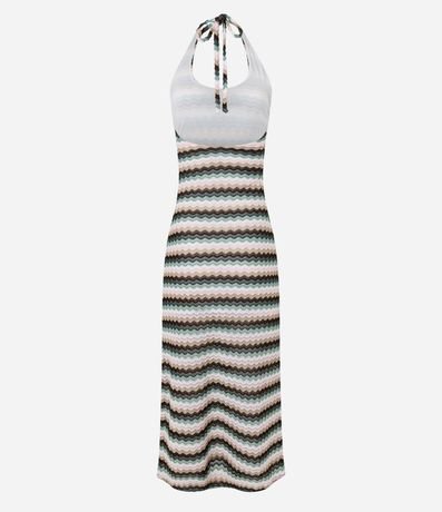 Ref: Vestido longo em crochê texturizado, com padrão zig zag e modelagem nadador que valoriza a silhueta. Possui decote redondo, amarração no pescoço e caimento evasê, trazendo leveza e movimento. Peça estilosa para compor looks de verão com elegância.