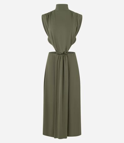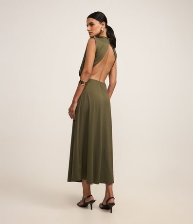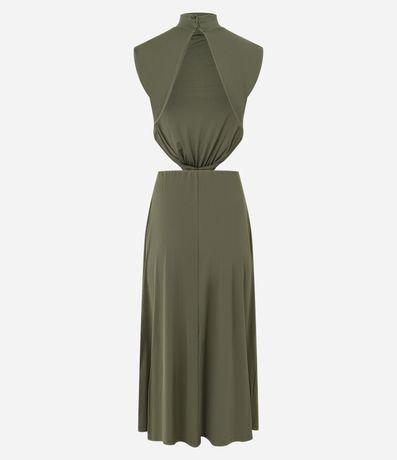 Ref: Vestido longo, reto com golinha alta, sem manga. Confeccionado em helanca e boas práticas ambientais, não possui estampas e destaque para as costas abertas.