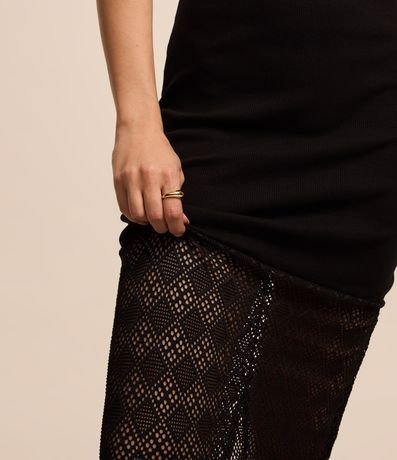Vestido Longo em Ribana com Saia Rendada Geométrica