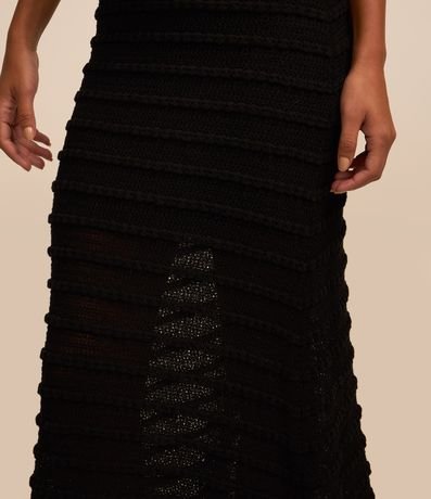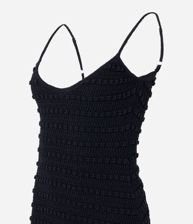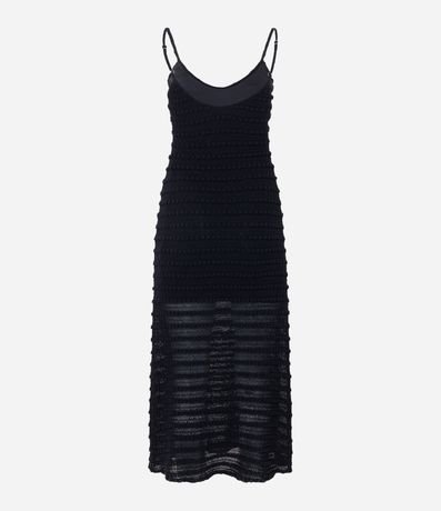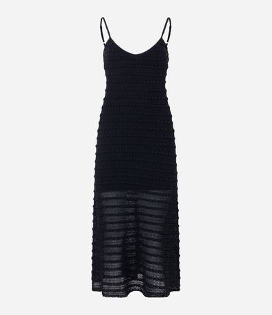 Vestido longo com alcinhas finas, confeccionado em tricô leve e ponto diferenciado.