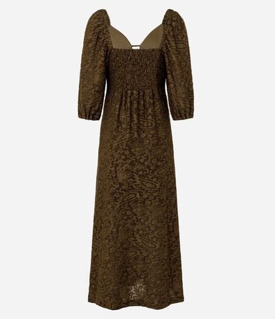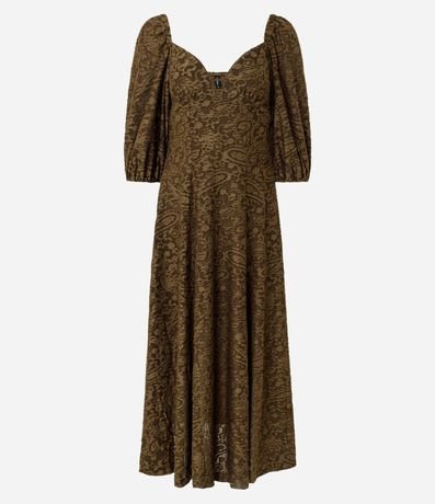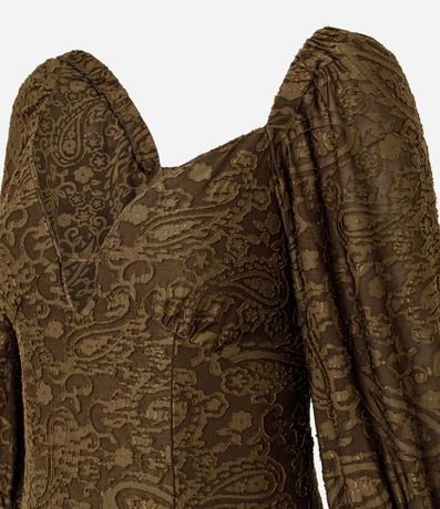 Vestido longo em tule devorê com manga longa e recorte frontal que destaca o decote V diferenciado. Possui modelagem fluida e acabamento texturizado que valoriza o visual boho moderno. Ideal para compor produções marcantes com movimento e sofisticação.