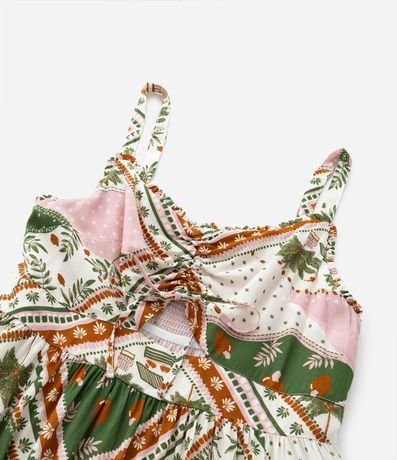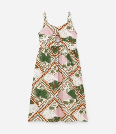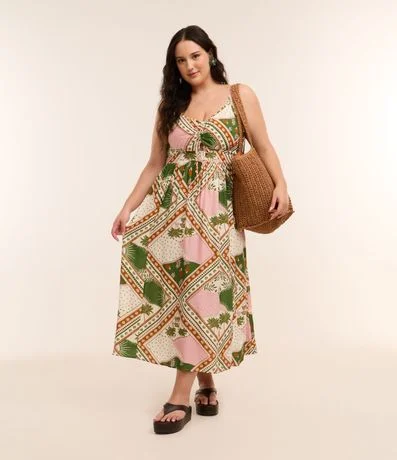 Ref: Vestido feminino Curve & Plus Size confeccionado em viscose mais sustentável com boas práticas ambientais, peça no modelo longo com decote em v, amarração, alça média e estampa contrastante de lenço. No seu conforto peça contém lastex nas costas.