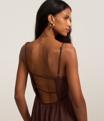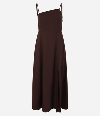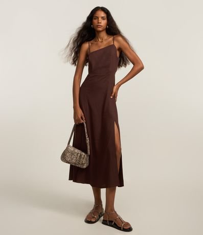 Ref: Vestido longo confeccionado com viscose mais sustentável e linho, oferecendo frescor e conforto. A peça tem alcinhas ajustáveis, decote enviesado, tiras nas costas e fenda lateral.