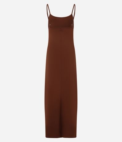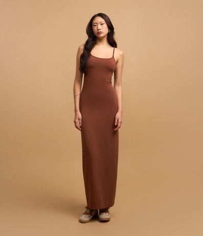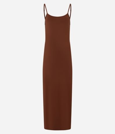 Ref: Vestido de modelo evasê, longo, com decote redondo e alças com regulador. Confeccionado em microfibra.