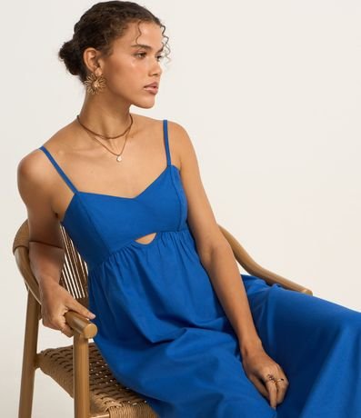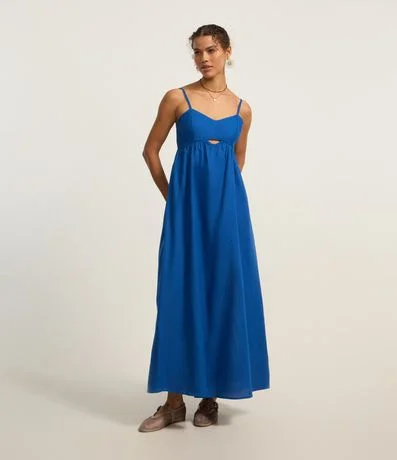 Vestido Longo Evasê com Recorte Vazado no Busto