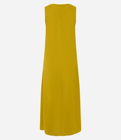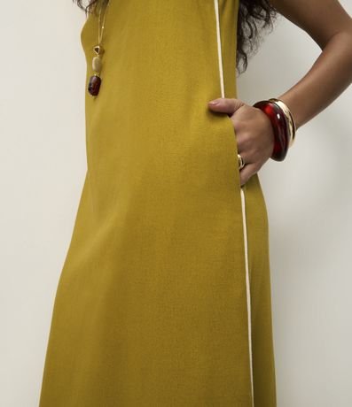 Vestido feminino confeccionado em viscose certificada através de boas práticas ambientais. Possui modelo longo, gola redonda, alças largas e viés contrastantes na lateral do vestido.