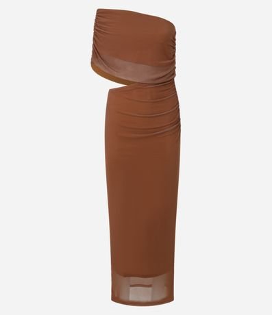 Ref: Vestido longo confeccionado em tule, com modelagem ajustada e design sofisticado. Possui detalhe ombro só, recortes e franzidos estratégicos, garantindo visual glamouroso para festas e happy hours. Ideal para quem busca elegância e estilo marcante.