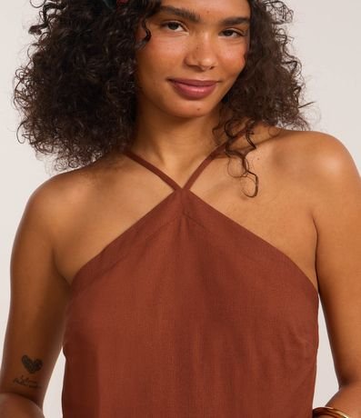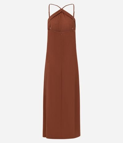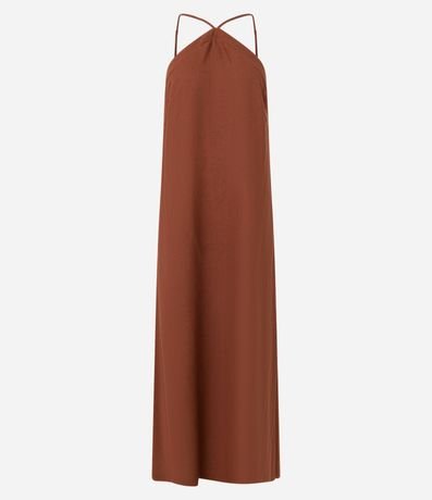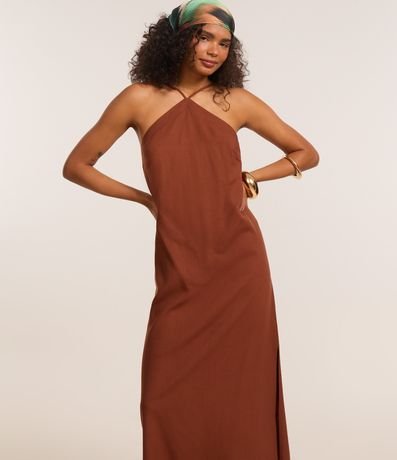 Ref: Vestido long midi de frente única, confeccionado em viscolinho com 30% de linho, com gola halter, fechamento nas costas por zíper inisível e fendas nas laterais da barra. Este produto possui viscose certificada em sua composição, sendo ambientalmente mais responsável.