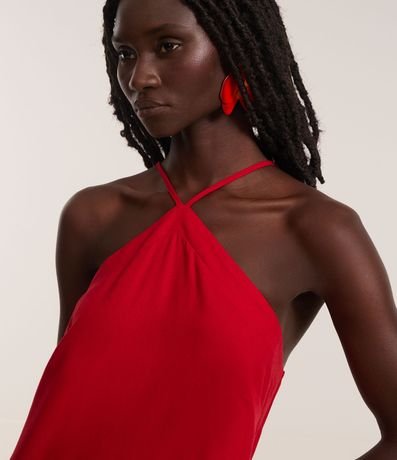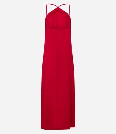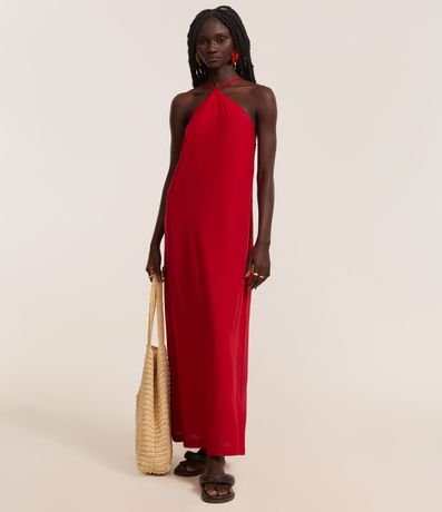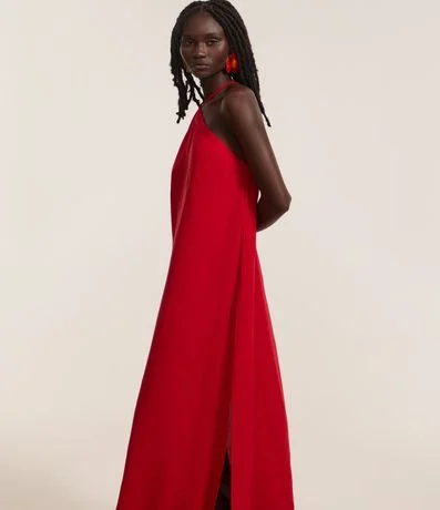 Ref: Vestido long midi de frente única, confeccionado em viscolinho com 30% de linho, com gola halter, fechamento nas costas por zíper inisível e fendas nas laterais da barra. Este produto possui viscose certificada em sua composição, sendo ambientalmente mais responsável.