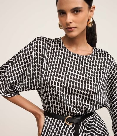 Vestido Longo Reto em Chiffon com Elástico Interno e Estampa Geométrica