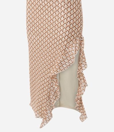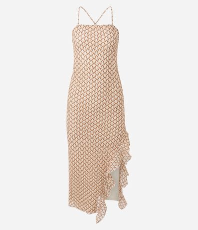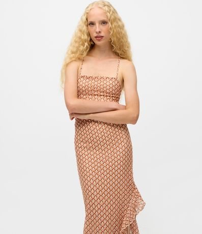 Ref: Vestido longo evasê texturizado com alças finas e decote quadrado, garantindo um visual moderno e elegante. A fenda lateral com babado adiciona movimento ao look. Peça ideal para produções sofisticadas de verão.