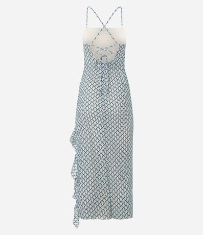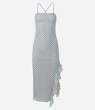 Ref: Vestido longo evasê texturizado com alças finas e decote quadrado, garantindo um visual moderno e elegante. A fenda lateral com babado adiciona movimento ao look. Peça ideal para produções sofisticadas de verão.