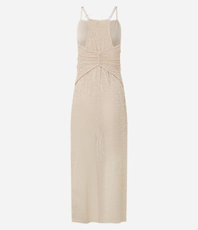 Vestido feminina longo com decote reto, alças finas ajustáveis, transpassado, com fenda frontal, detalhe nas costas.
