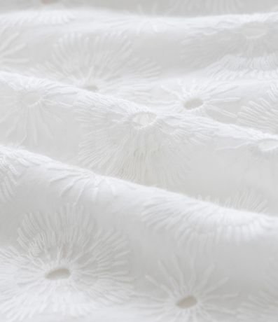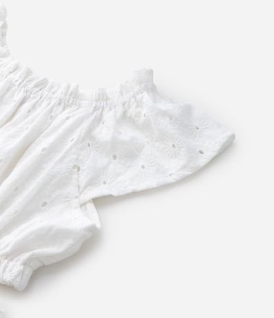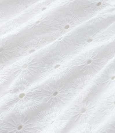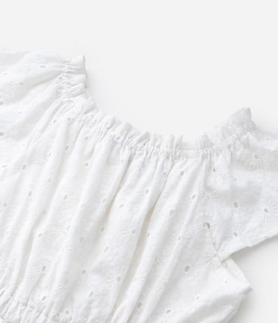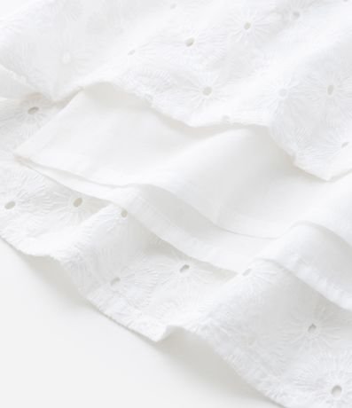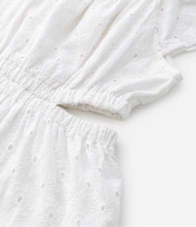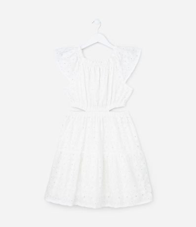 Ref: Vestido infantil confeccionado em laise mais sustentável, no modelo Marias. Possui gola redonda, com elástico, sem mangas, com babadinhos, cut out lateral e texturizado.