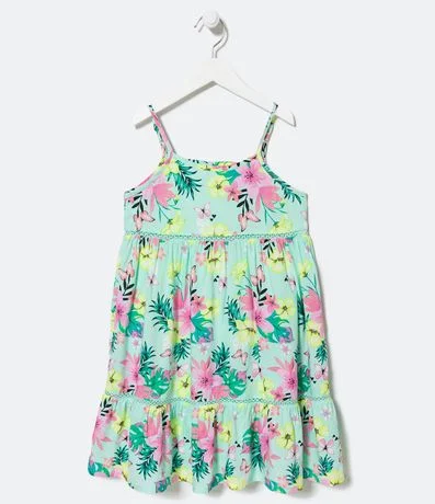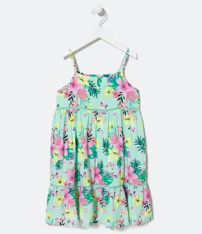 Ref: Vestido infantil, modelo marias, curto com detalhes em rendinhas e confeccionado em viscose.
