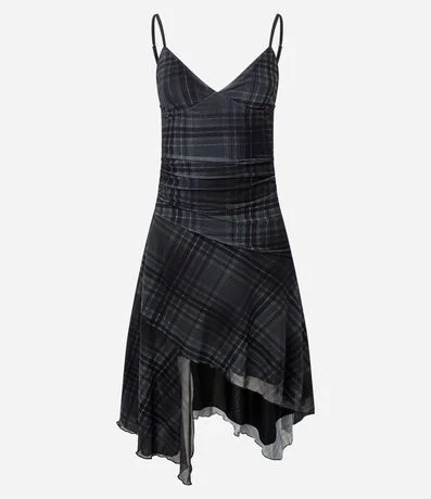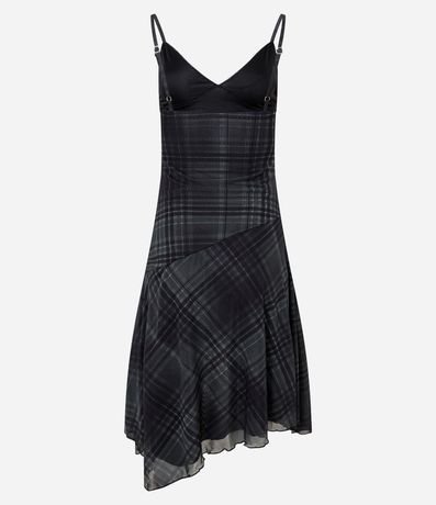 Ref: Vestido midi em tule com estampa xadrez e modelagem reta. Possui alças finas reguláveis, decote delicado e barra assimétrica com movimento leve. Ideal para compor produções modernas e cheias de personalidade, confeccionado com boas práticas ambientais em tecido de PET reciclado.
